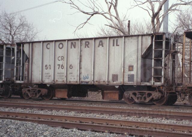 Previous Next Car is ex PRR 257427 and is seen here in March 1996. Car was built in Nov 1955 as a covered hopper. Car was painted at the Hollidaysburg, PA car shops in 1978. Photo By John P. Almeida Equipment Type Class H34B Conrail Number 51766 Additional Galleries John Almeida's RPOTW & RSOTDs Collection CRHS Conrail Photo Archive Contributions