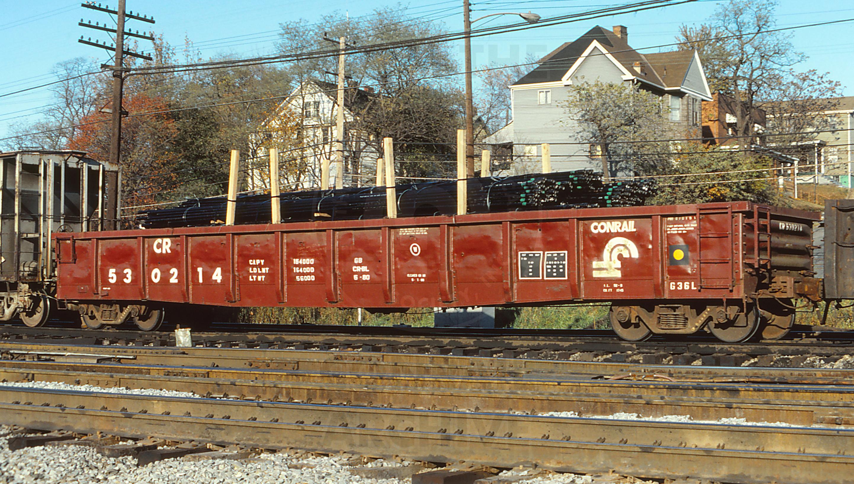 CR 530214is seen at Baden (East Conway), PAon 10/24/81. Car is ex PC 530214/PRR 616191, built 7-59 and was painted CR BL 5-80. It was deleted by CR on 1/19/96 and became SPSX 530214 which was deleted 8/29/98.