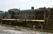 Whitelined former CNJ RS-3 1541 rests retired in the Juniata shops deadline in July, 1978.