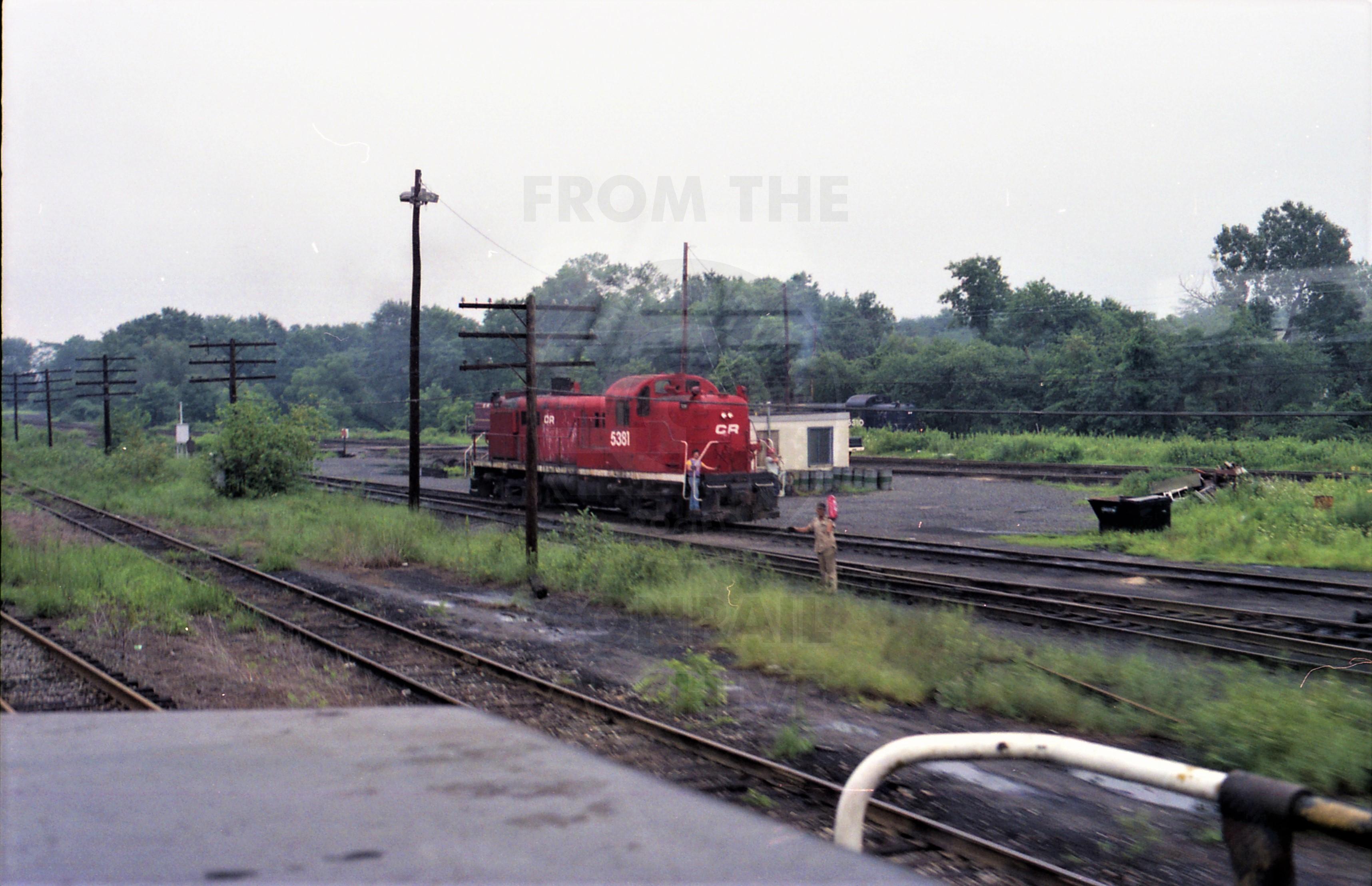 Conrail. ex CNJ RS-3 1552, renumbered #5381. July 1978 location unknown. The photo was taken from a freight that I rode from Allentown, PA to Oak Island, near Newark, NJ.