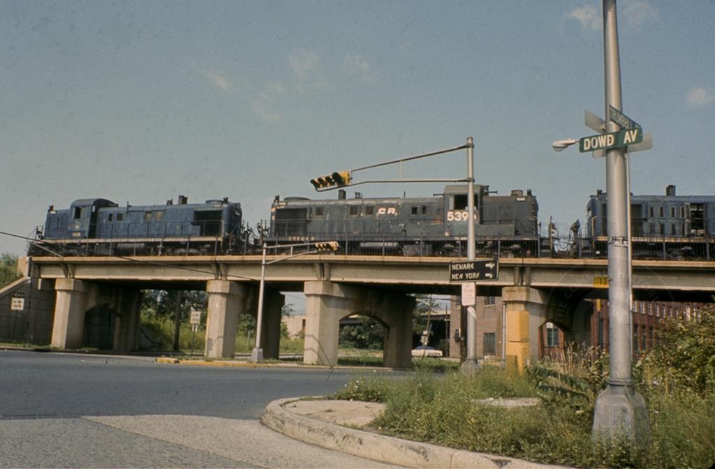 A trio of RS-3's (CNJ 1550, CR 5396 (ex-CNJ 1704), and unidentified) work the yard at Elizabethport in July, 1977.