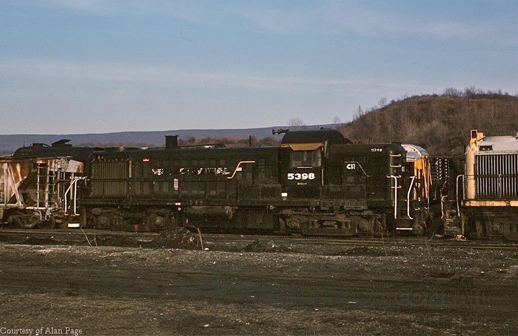 Former PC RS-3 5398 rests in the Juniata shops deadline in March, 1979.