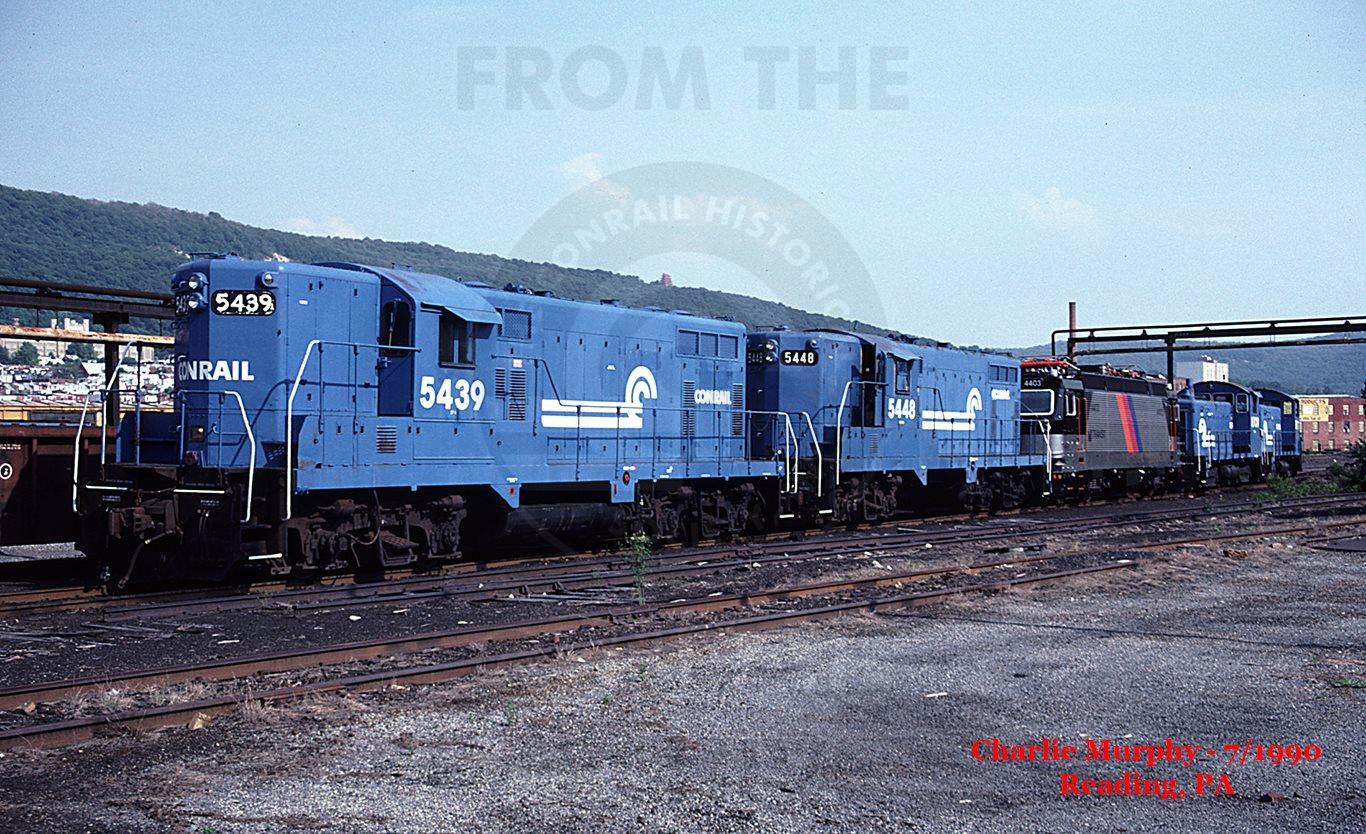 New Jersey Transit ALP-44 #4403 seems a tad out of place with a pair of GP8's and a pair of SW900m's in Reading yard. CR 5439 is former RDG 633 and CR 5448 is former Erie 1206. The two SW's are former RDG as well.
