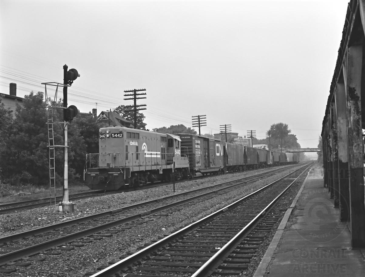 GP8 5442 with local WNWS-2 at Palmer, MA. on Aug. 4, 1983.