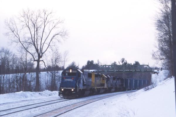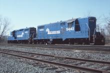 Fresh-looking GP8's 5442 and 5456 at Pittsfield, MA. on April 11, 1981. Assigned as the power for the Pittsfield local WNPI-10...."Oh, great, now I gotta start TWO of these things when I go on duty!" Those who are familiar with starting procedures for EMD's know what I mean.