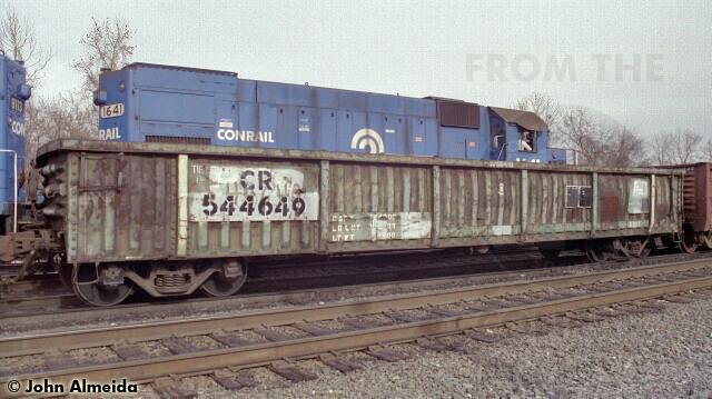 Conrail gondola Class G32C CR 544649 November 1993 Used in MOW service for tie loading only. Car is ex PRR 610789.
