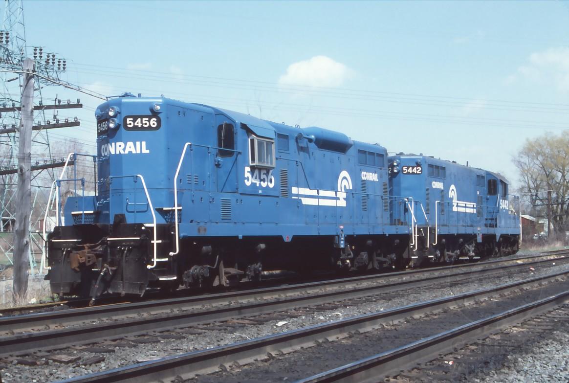 GP8's 5456 and 5442 at Pittsfield, MA. on April 11, 1981.
