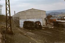 With the Juniata shops deadlines filled with RS-3's in March, 1978, former PC RS-3 5484 appears also being readied for retirement beside an unknown GP30.