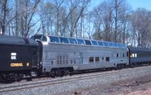 Previous Next 85 foot Full-length dome #55 on OCS301 at Meriden, CT. on May 3, 1990. Photo By Carl Weber Year 1990 Original Date 5/3/90 Location Details Hicks Ave. Conrail Number 55 Subject(s) OCS Passenger Equipment Collection CRHS Conrail Photo Archive Contributions