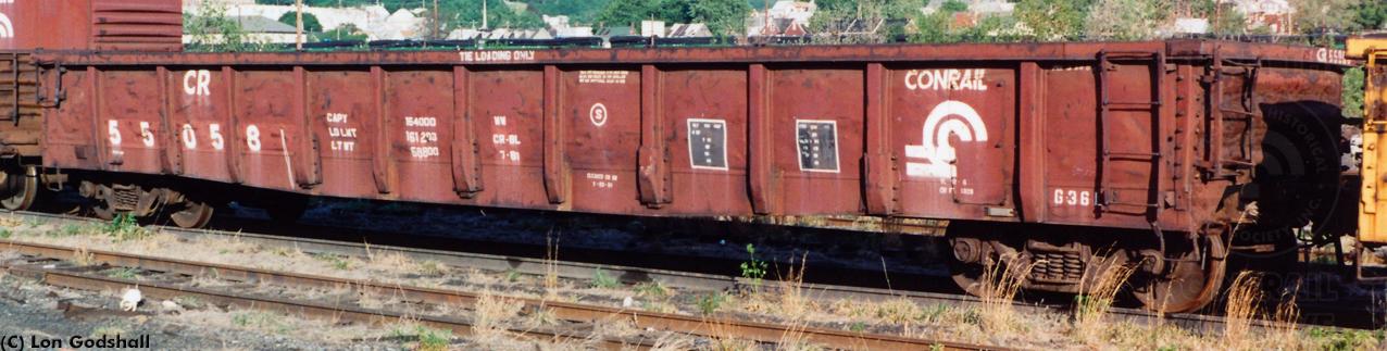 Car is ex CR 553947/PRR 386689. Car was built Apr 1959 and was painted at the Hollidaysburg, PA car shops in July 1981.