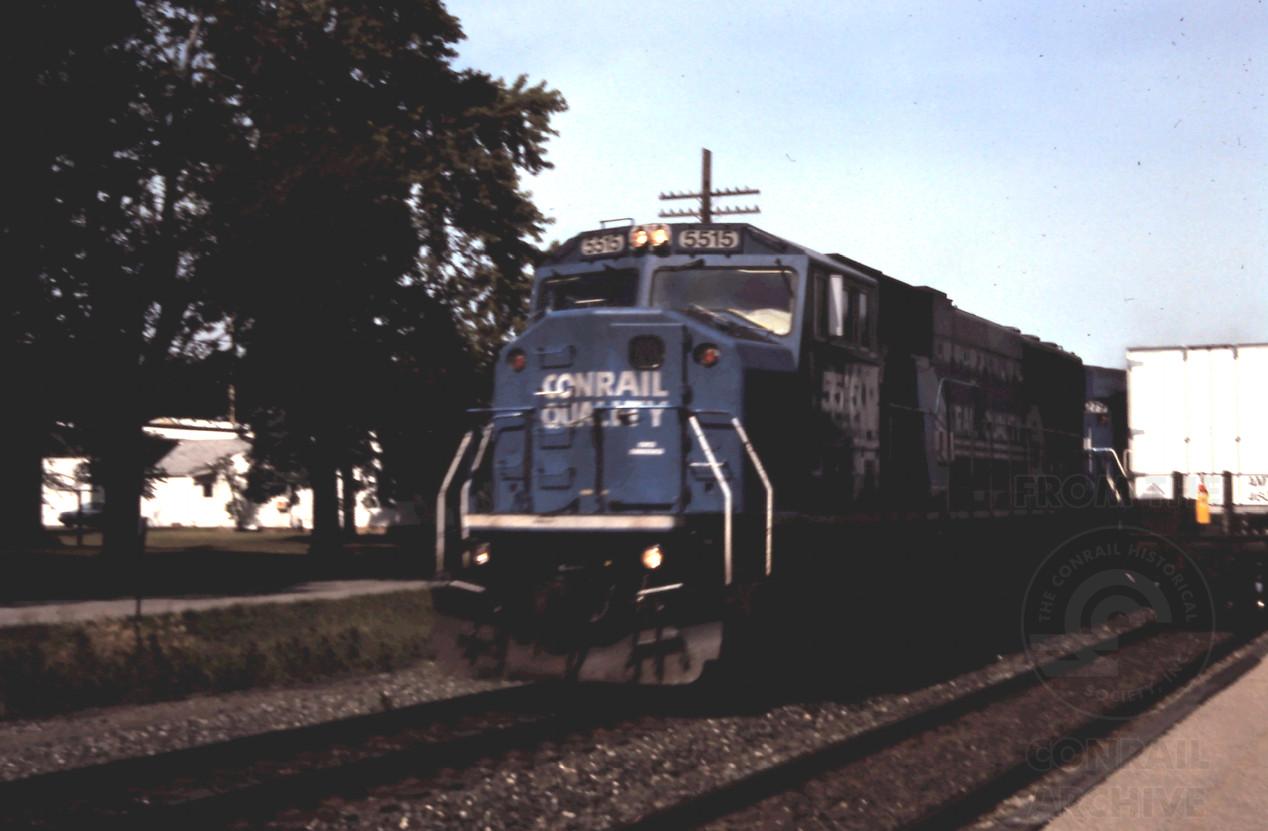 CR 5515 and 6279 leads TV10B past the rear of Amtrak 49 at Waterloo, IN on June 20, 1998.