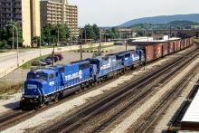 Previous Next Photo By Rich Bowes CR 5542 EMD SD60M PITTSBURGH LINE ALTOONA PA WITH TRAIN CAPI2 Year 1993 Original Date 8/2/93 Location Altoona PA Equipment Type EMD SD60M Conrail Number 5542 Additional Galleries Rich Bowes' Conrail Photographs Line or Locale Conrail's Pittsburgh Line East Slope West Slope and Horseshoe Curve Operations Collection CRHS Conrail Photo Archive Contributions