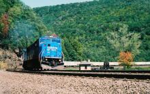 Conrail SD60M No. 5544 tows a westbound Roadrailer around Horseshoe Curve on September 30, 1994. The symbol was probably either RR261 or RR241. Doug Davidson photo with permission