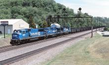 CR 5550, 6067 & 6075 are seen leading 134 empties of ULK-85E west at Summerhill, PA on 6/8/97.
