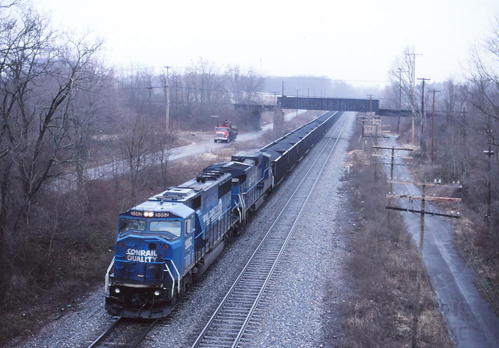 CR 5552 & 6018 are seen leading a EB coal train on CSX rails at North Branch MD on 1/15/98.