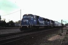 Previous Next CR 5573 and a SD50 leads BRPI-8 past the Amtrak station at Elkhart, IN on May 8, 1999. Chris Howe photo Photo By Chris Howe Year 1999 Original Date 5/8/99 Location City Elkhart IN Conrail Number 5573 Additional Galleries Chris Howe's Conrail action 1999 Line or Locale Conrail's Chicago Line Collection CRHS Conrail Photo Archive Contributions