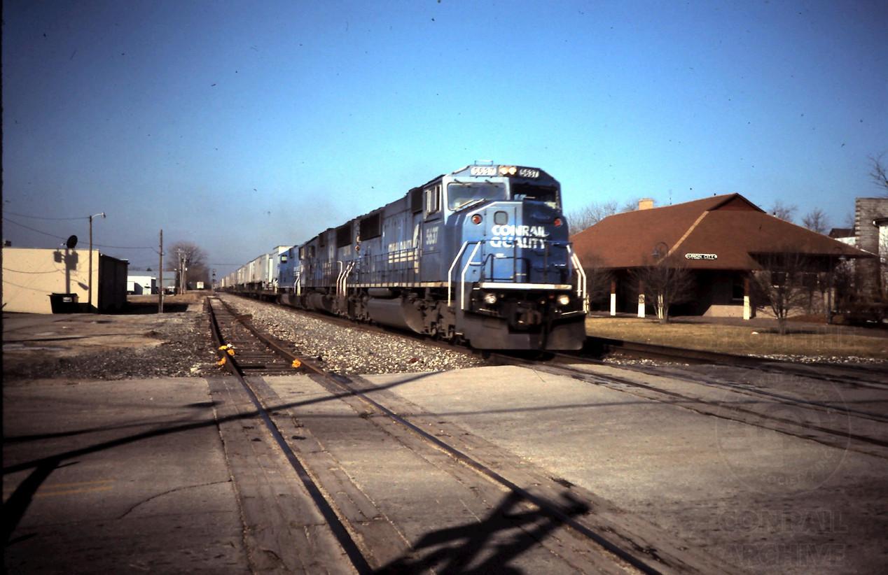 Previous Next CR 5637 and friends powers Mail-4 past the old passenger depot in Union City, IN on March 19, 1997 Photo By Chris Howe Year 1997 Original Date 3/19/97 Location City Union City IN Conrail Number 5637 Additional Galleries Chris Howe's Conrail action 1997 Line or Locale Conrail's Indianapolis Line Collection CRHS Conrail Photo Archive Contributions