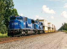 Westbound TV-11 passes by milepost 97 on the Chicago Line at Fairview, PA.