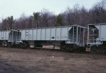 BH1C ballast hopper in westbound Ballast train BAL171 at Bancroft, MA. on March 23, 1985.