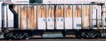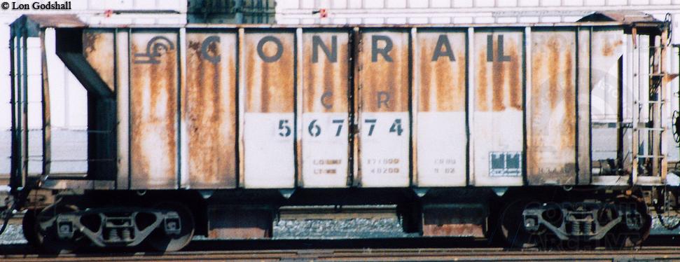 Previous Next Car is ex PRR. Note that the number is out of the normal series for these ballast cars (numbered just above the BH1C's purchased by Conrail). Photo By Lon Godshall Equipment Type Ballast Cars Conrail Number 56774 Collection CRHS Conrail Photo Archive Contributions