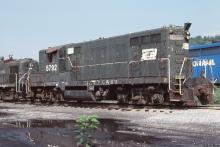 Former PC 5792/NYC 5792 in storage at Altoona, PA on 8/5/1984. The ALCO to the left is RS3M CR 9966.
