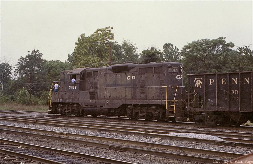 CR GP-7 5817 (ex-RDG 625) moves a string of hoppers including PRR 868672 at Abrams yard in August, 1978.