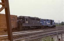CR GP-7 5829 (ex-RDG 627) and GP-30 2199 work Abrams yard in August, 1978.