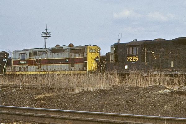 CR GP-7 5829 (ex-RDG 627) and GP-30 2199 work Abrams yard in August, 1978.