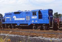 Previous Next Photo By John Pari Former RDG 635 is seen in storage at Rutherford, PA on 10/3/1982 with fairly new paint. Year 1982 Original Date 10/3/82 Location Rutherford PA Equipment Type EMD GP9 Conrail Number 5837 Additional Galleries John Pari's Conrail Locomotives Collection CRHS Conrail Photo Archive Contributions