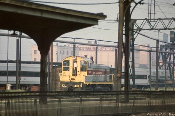 After the N&W suburban train to Orland Park was equipped with RTA bi-level cars in the summer of 1979, Conrail leased the former N&W coaches for use on its Valparaiso trains. Train No. 454 is seen behind two Conrail Geeps(GP7 5909 and GP38-2 8187) running long hood forward above the ICG at Grand Crossing, in October 1979. The use of the ex-N&W coaches in this sevice lasted just a few months, as Conrail turned the service over to Amtrak in 1980. Doug Davidson photo with permission