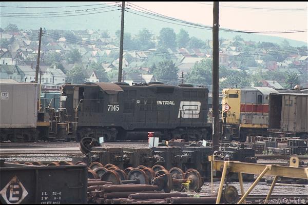 EL GP-7 1230 rests outside the Scranton diesel shops in April, 1977.