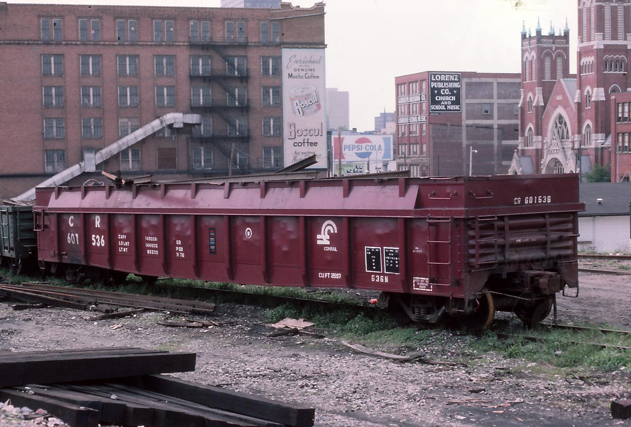 Previous Next Car is ex PRR 617234. Photo taken June 1977. Photo By Aubrey Flock Year 1977 Original Date 6/1/77 Equipment Type Class G36M Conrail Number 601536 Collection CRHS Conrail Photo Archive Contributions