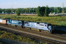 Conrail C39-8 No. 6016 and C36-7 No. 6626 lead an eastbound intermodal train at Hammond, in September 1998. Doug Davidson photo with permission
