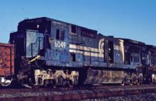 Conrail C40-8 6049 is shot at Sewickley, PA in SHP-501. Unit was wrecked at Stryker, OH in late January, 1999. JB Kerr Photo