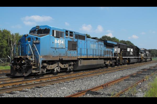 A C40-8W leads a C40-8 and a GP40-2 on eastbound train PIOI. Note that this train is taking the by-pass around Allentown Yard along the south side of the Lehigh River. At this point in time, PIOI was not scheduled to perform work at Allentown.