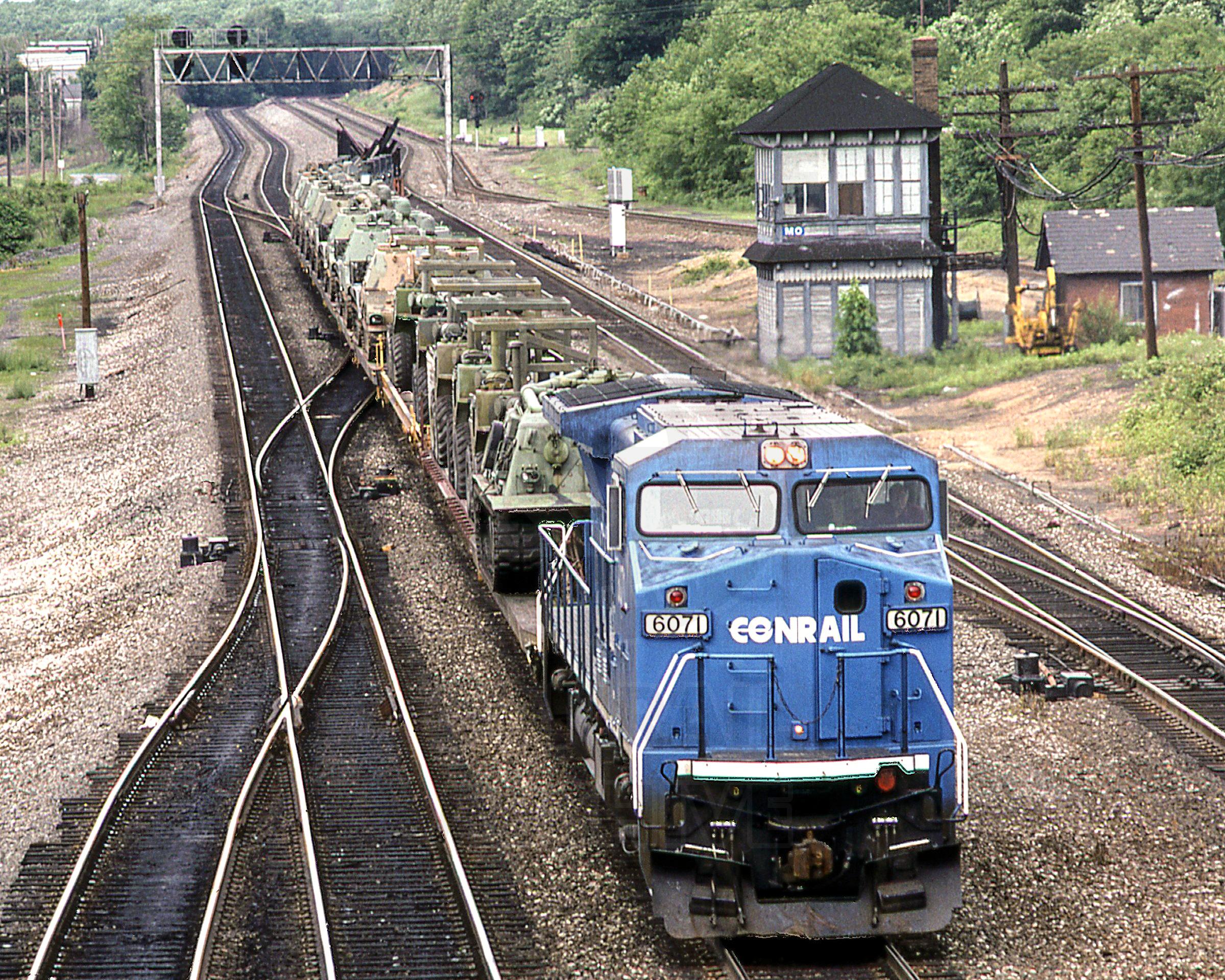 CR 6071 GE C40-8W PITTSBURGH LINE CRESSON PA MO TOWER WITH OVER DIMENSION TRAIN
