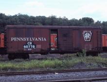 CR 60778, an ex PRR round top boxcar. Altoona, PA 8/23/80