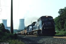 C40-8W 6078 leads Conway-Edgemoor freight PIED past the Limerick Nuclear Power Plant in Linfield, PA. The 6078 is unusual in that it has "Conrail Quality" on the front but has the standard logo on the side.