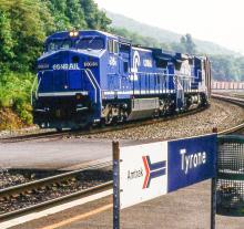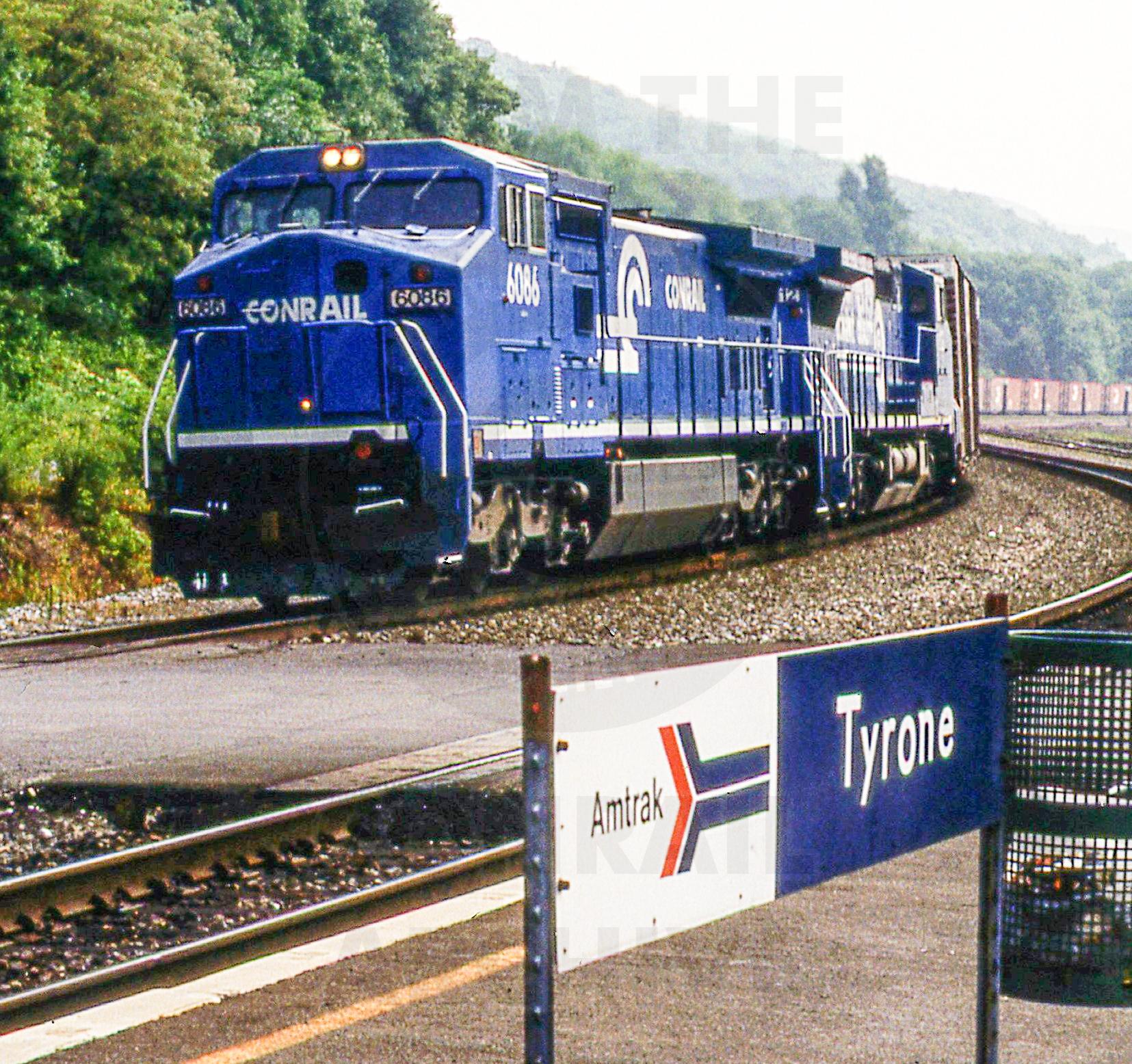 Previous Next Photo By Rich Bowes CR 6086 GE C40-8W PITTSBURGH LINE TYRONE PA WITH UNKNOWN TRAIN Year 1991 Original Date 7/1/91 Location Tyrone PA Equipment Type GE C40-8W Conrail Number 6086 Additional Galleries Rich Bowes' Conrail Photographs Line or Locale Conrail's Pittsburgh Line Collection CRHS Conrail Photo Archive Contributions