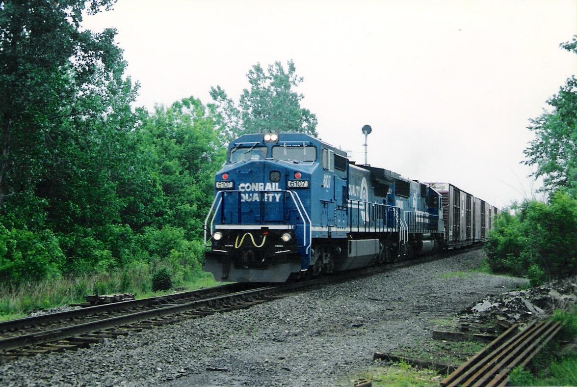 STBN-2 with the 6107 on the point is southbound at Galatea, OH on May 22, 1999