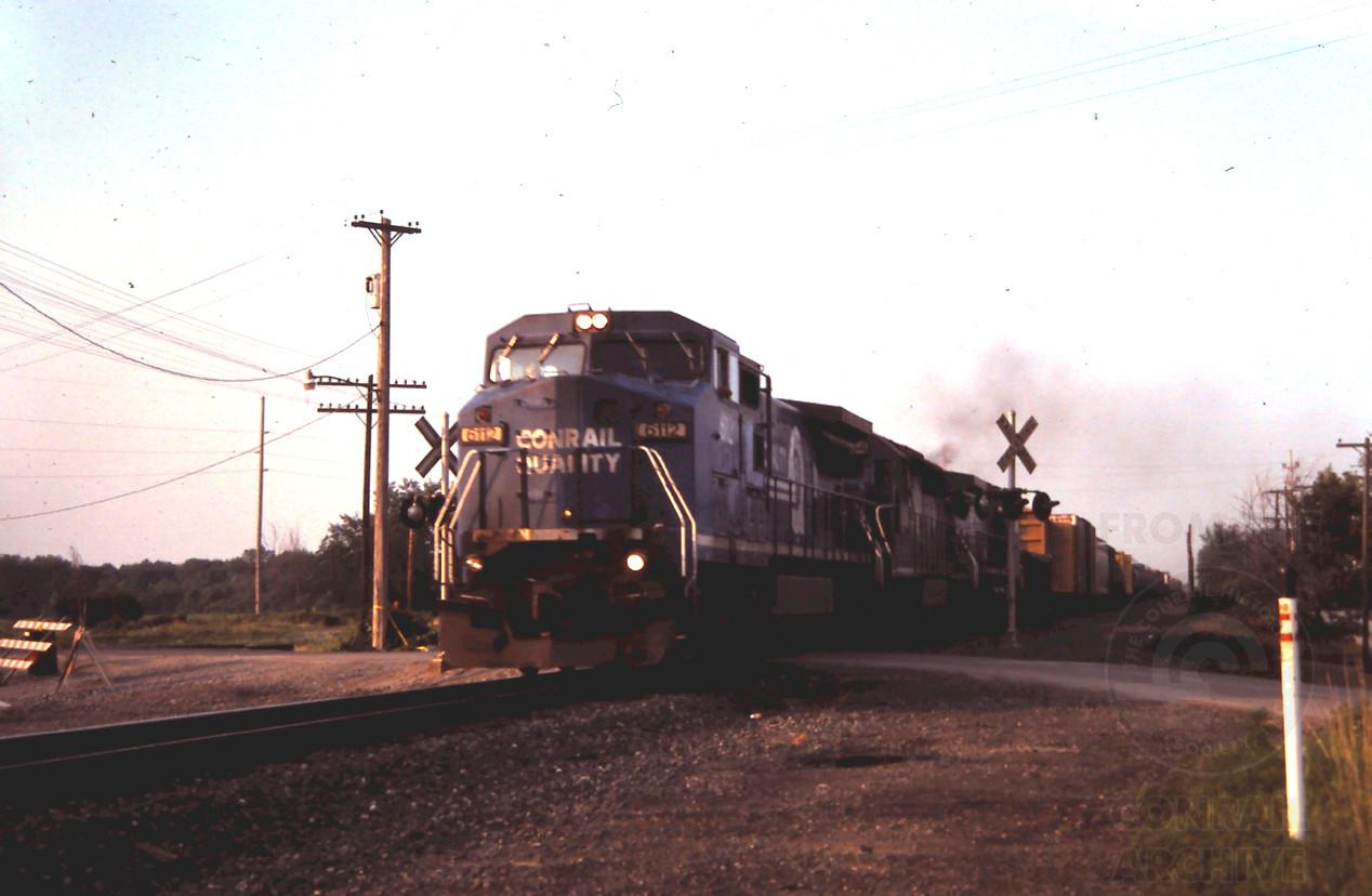 CR 6112 and friends leads TV5 southbound at Greenwich, OH on June 26, 1998. TV5 had a large cut of freight cars on the head end of the train that day.