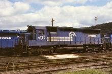 CR SD-45 6135 leads a quartet of CR blue power at Pitcairn, PA in August, 1978.