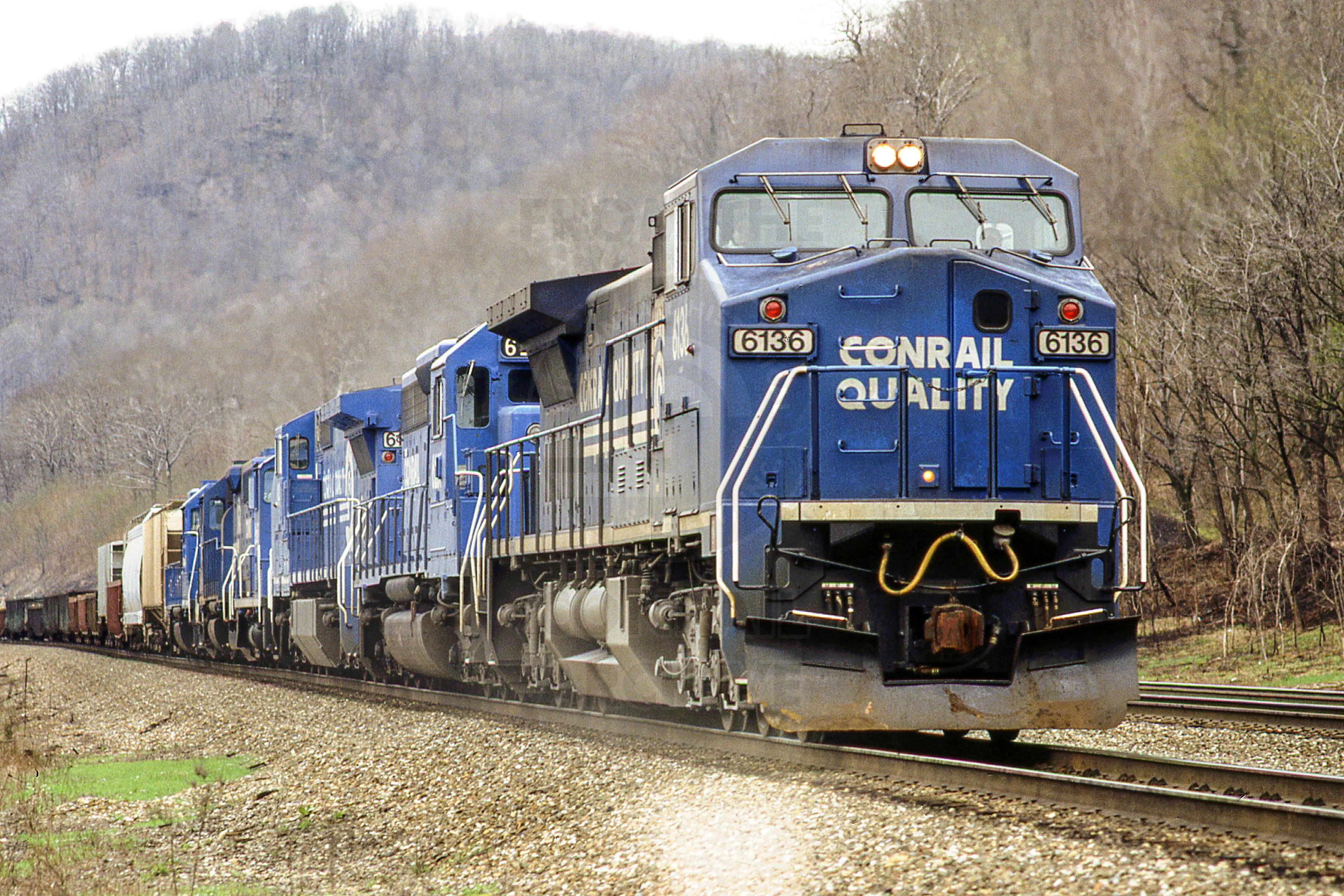 Previous Next Photo By Rich Bowes CR 6136 GE C40-8W PITTSBURGH LINE LOGAN TWP PA WITH UNKNOWN TRAIN Year 1992 Original Date 4/1/92 Location Logan Twp PA Equipment Type GE C40-8W Conrail Number 6136 Additional Galleries Rich Bowes' Conrail Photographs Line or Locale Conrail's Pittsburgh Line Collection CRHS Conrail Photo Archive Contributions