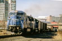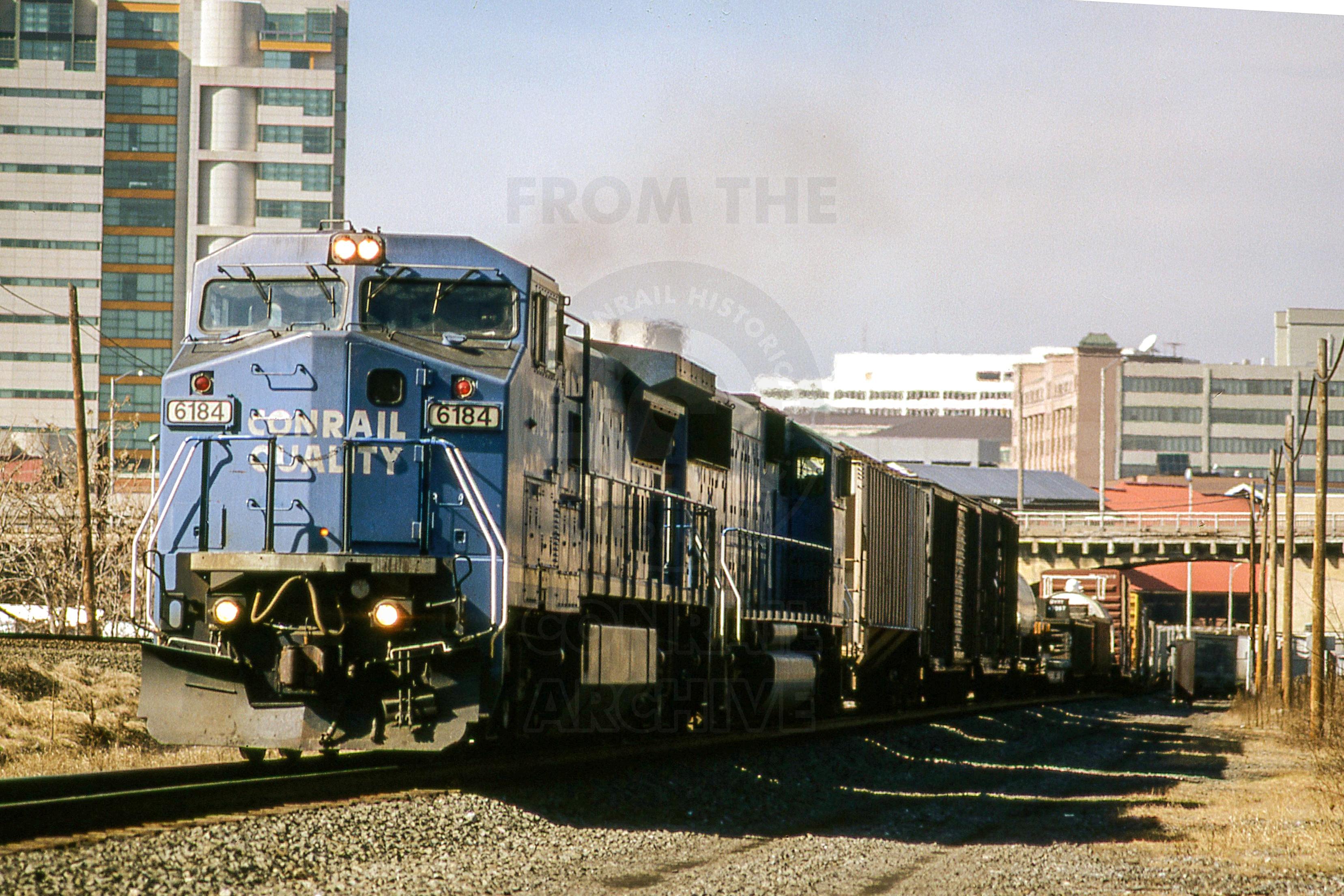 Previous Next Photo By Rich Bowes CR 6184 GE C40-8W HARRISBURG LINE HARRISBURG PA WITH TRAIN PIAL Year 1997 Original Date 3/1/97 Location Harrisburg PA Equipment Type GE C40-8W Conrail Number 6184 Additional Galleries Rich Bowes' Conrail Photographs Line or Locale Conrail In and Around Harrisburg Collection CRHS Conrail Photo Archive Contributions