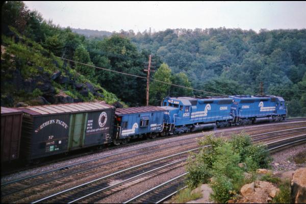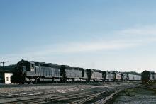 A pair of SD45 helpers lead a dog's breakfast consist - SD45 - SD35 - SD45 - U25B. Woof.