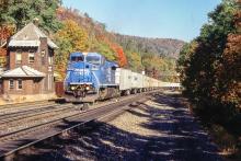 CR 6192 GE C40-8W PITTSBURGH LINE ALLEGHEMY TWP PA MG TOWER WITH TRAIN RR261