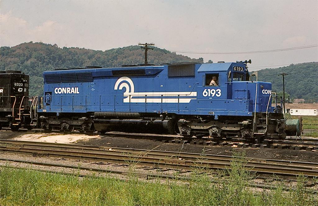 With CR blue paint gleaming in the sun, SD-45 6193 is ready to go at Pitcairn in August, 1978.