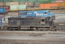 With a 40' LV boxcar in the background, CR SD-45 6195 rests with U25B 2543 at the Enola engine terminal in May, 1979.