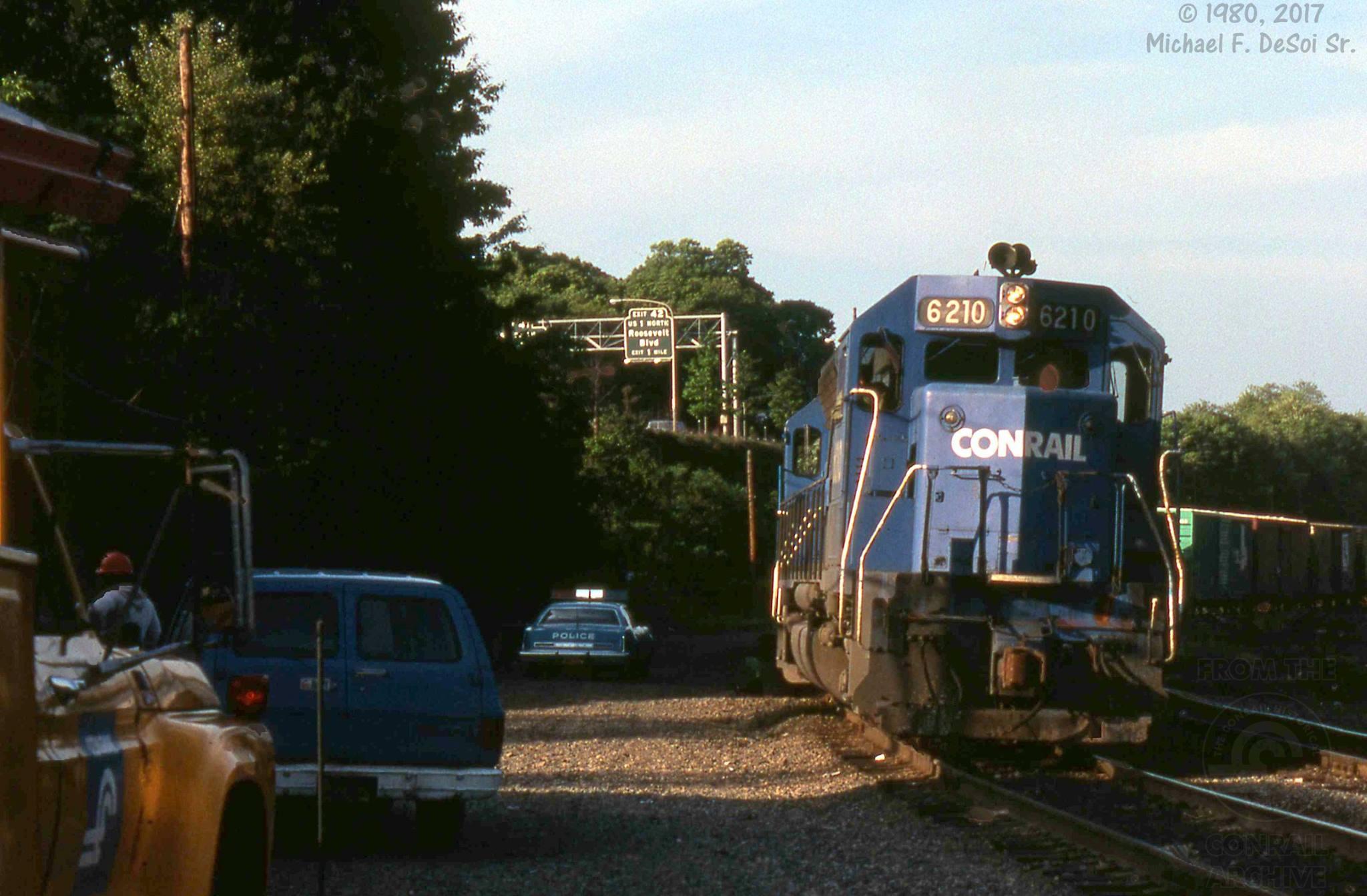 Conrail SD-45 #6210 leads a train at Belmont in Philadelphia, PA. May 14, 1980.