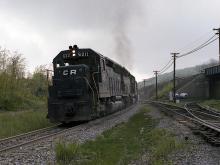 A Westbound is about to enter the tunnel at the top of the mountain.